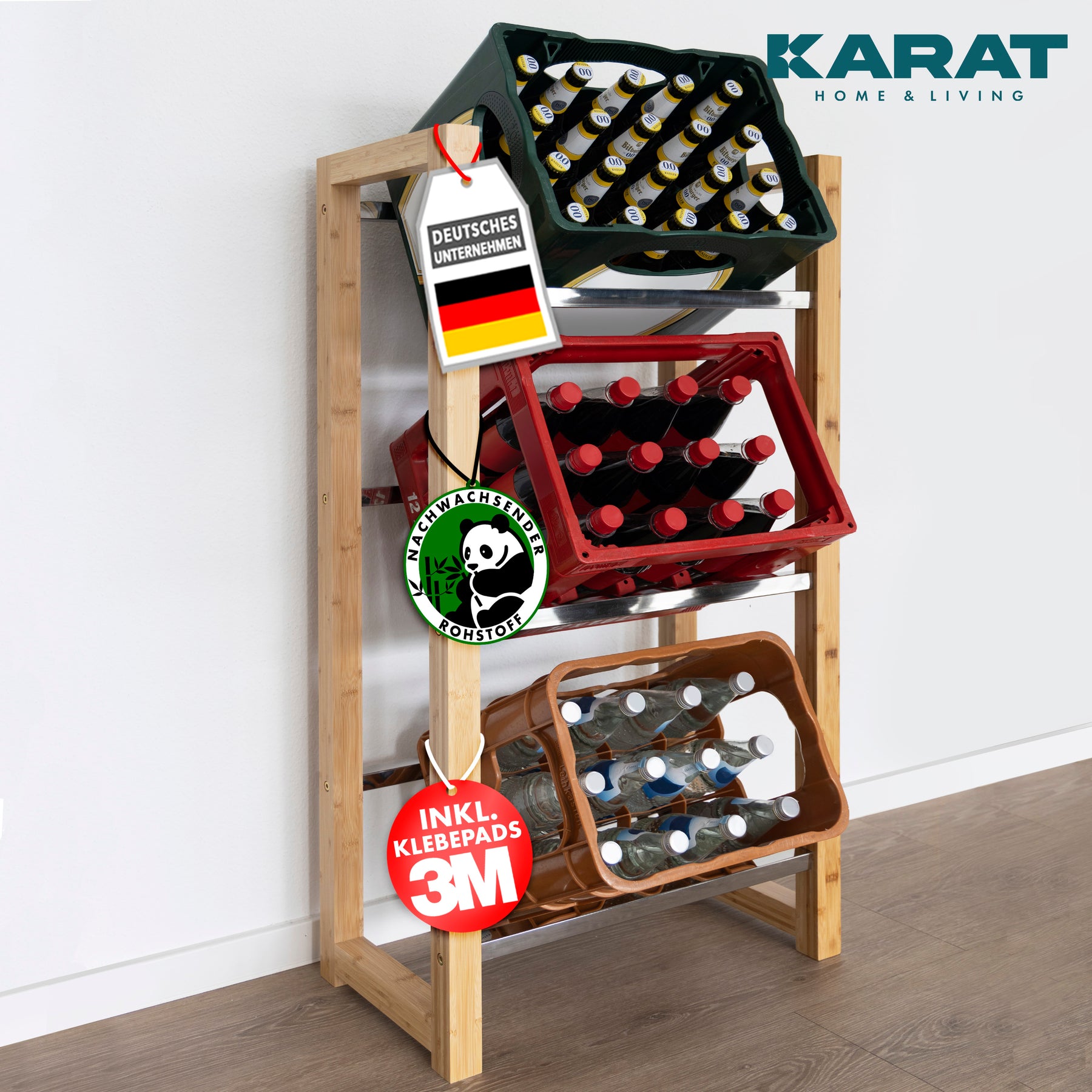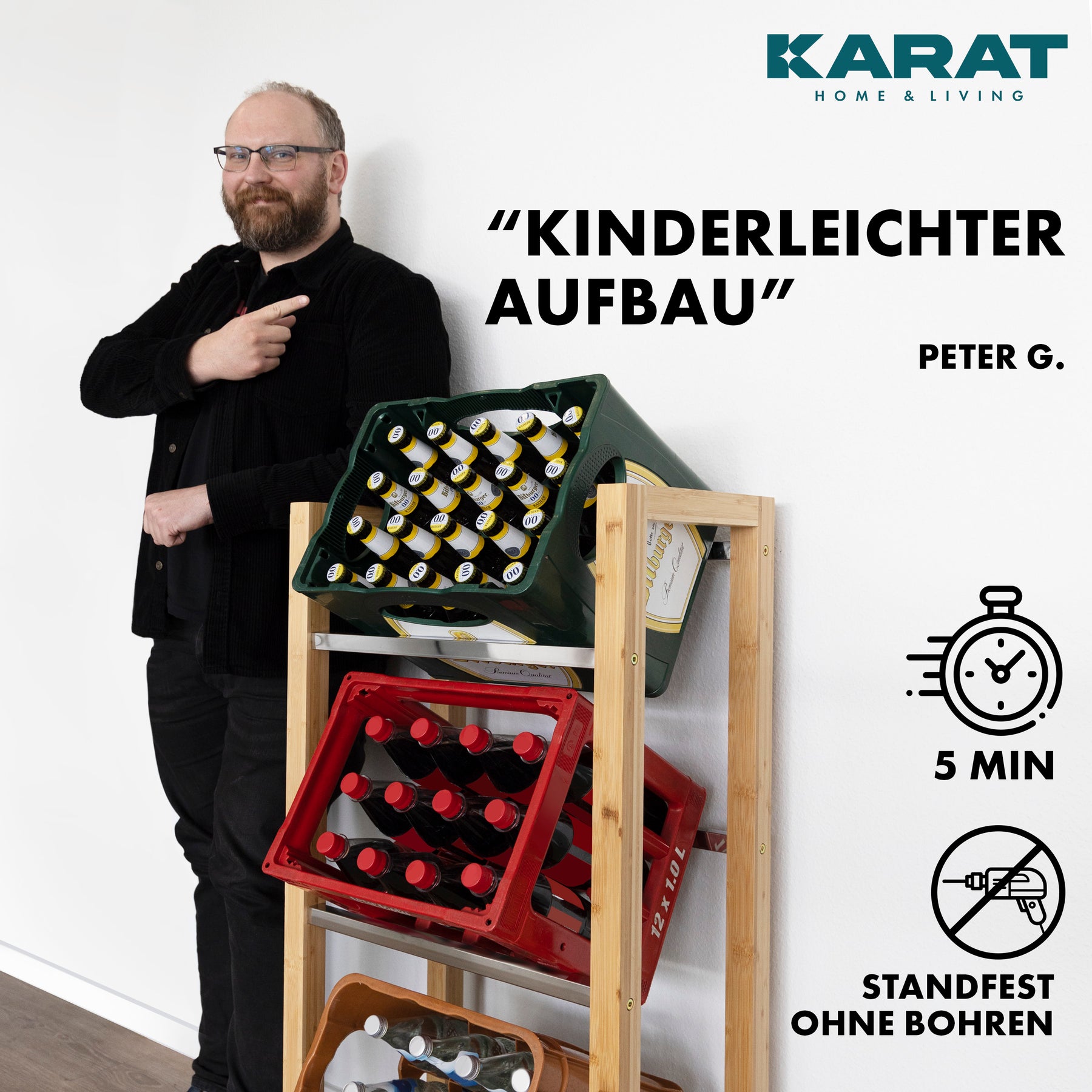 En résumé, le porte-bouteilles en bambou Flash offre un système de stockage polyvalent et robuste, idéal pour ranger les caisses de boissons, les boîtes de linge et de nombreux autres objets. Avec son design attrayant, son montage facile et sa grande capacité de charge, il constitue la solution parfaite pour tous ceux qui attachent de l'importance à l'ordre, à la stabilité et à l'esthétique.