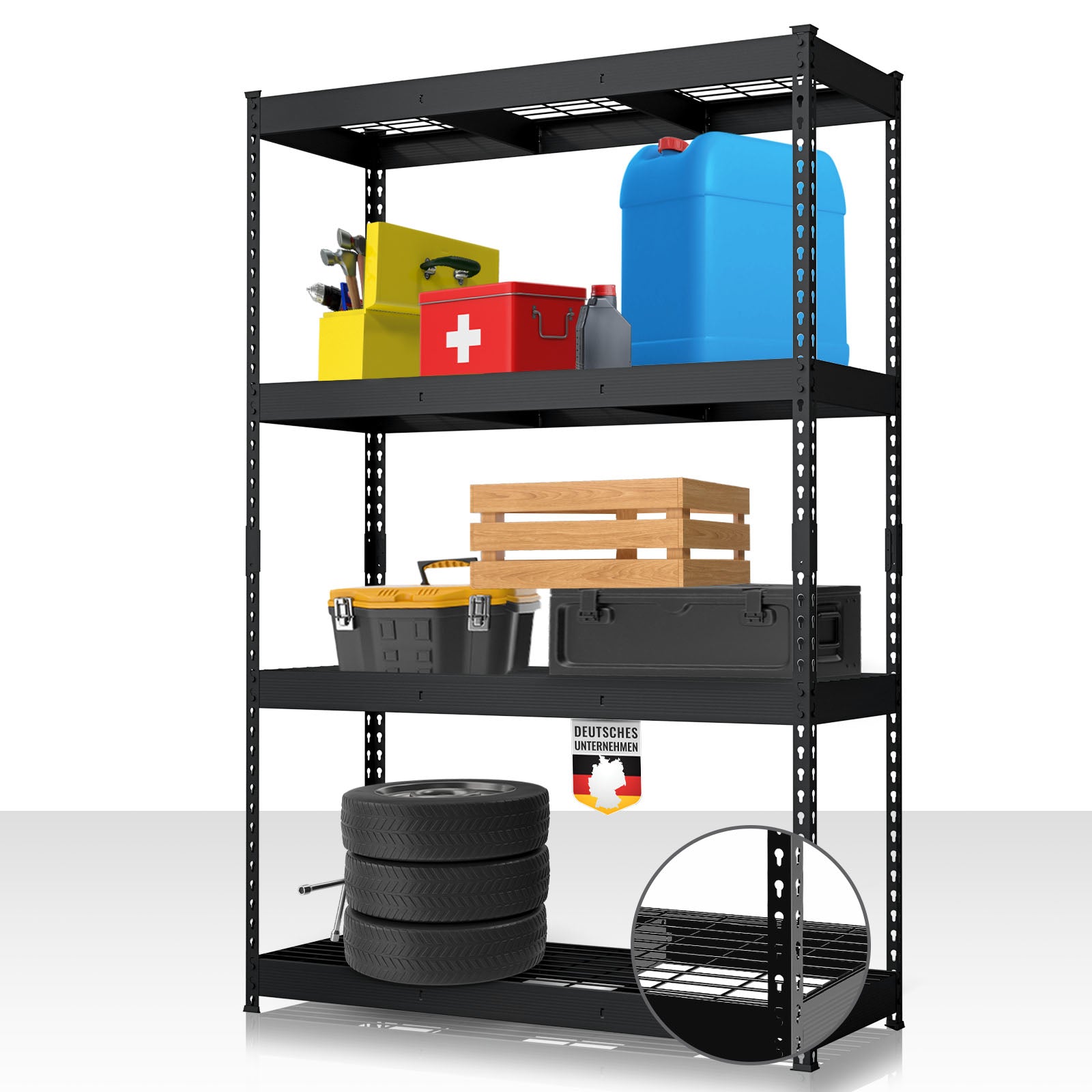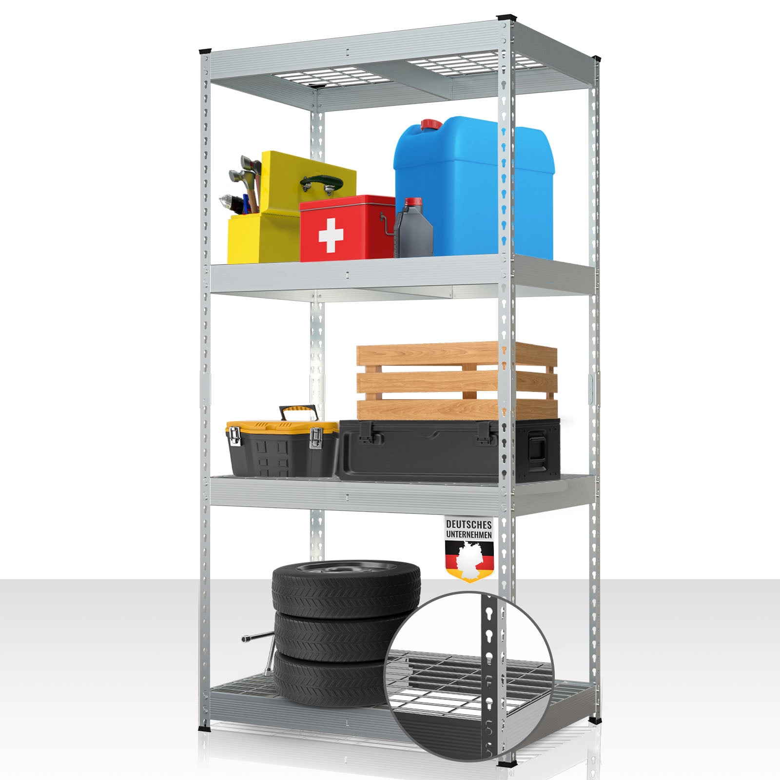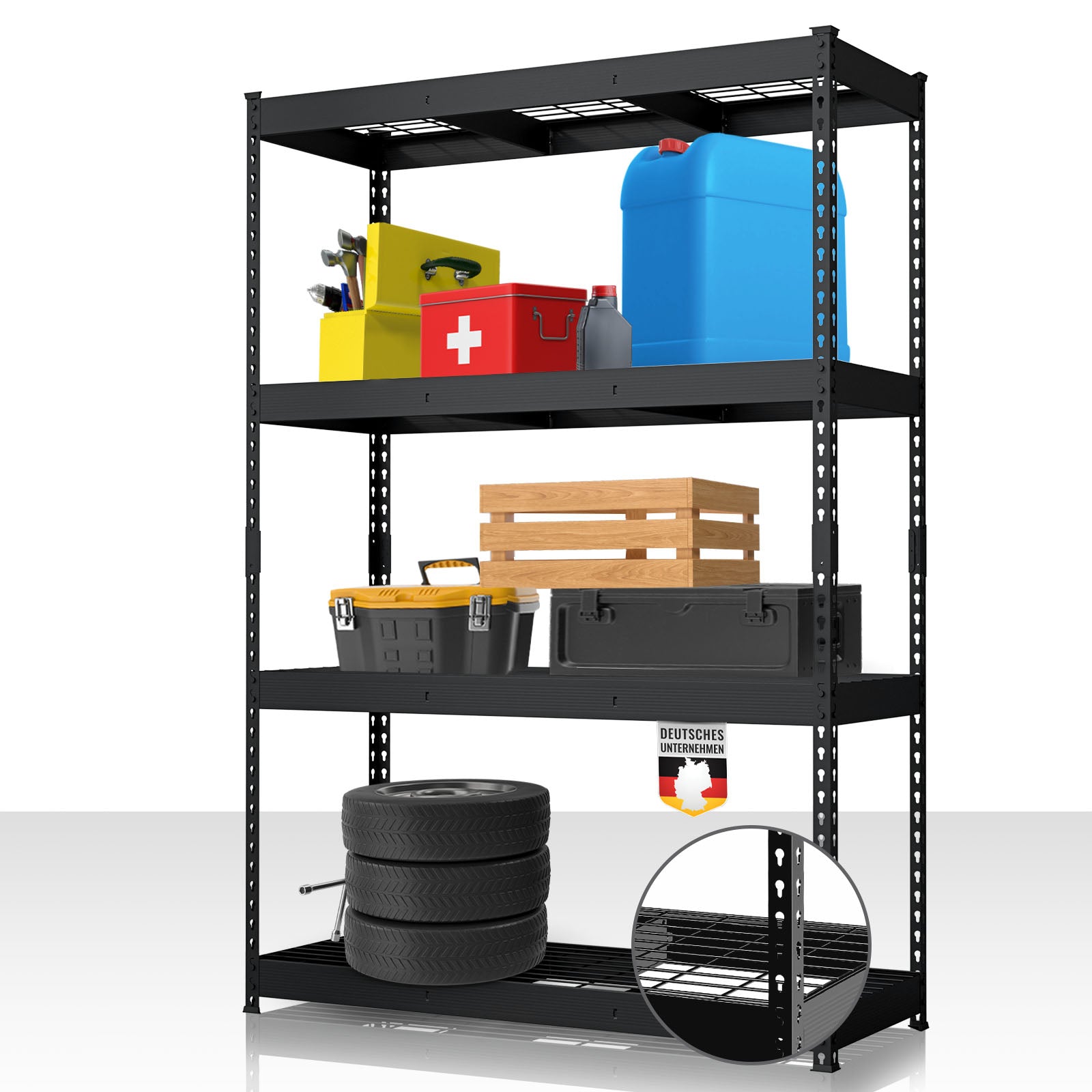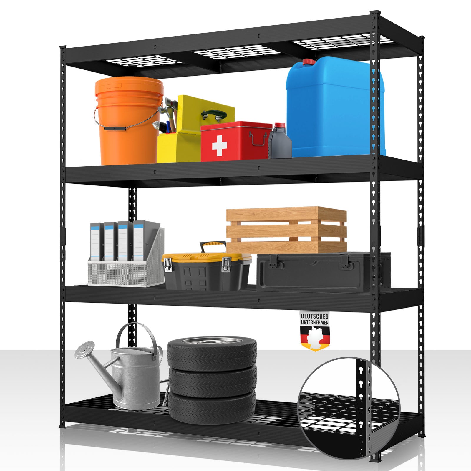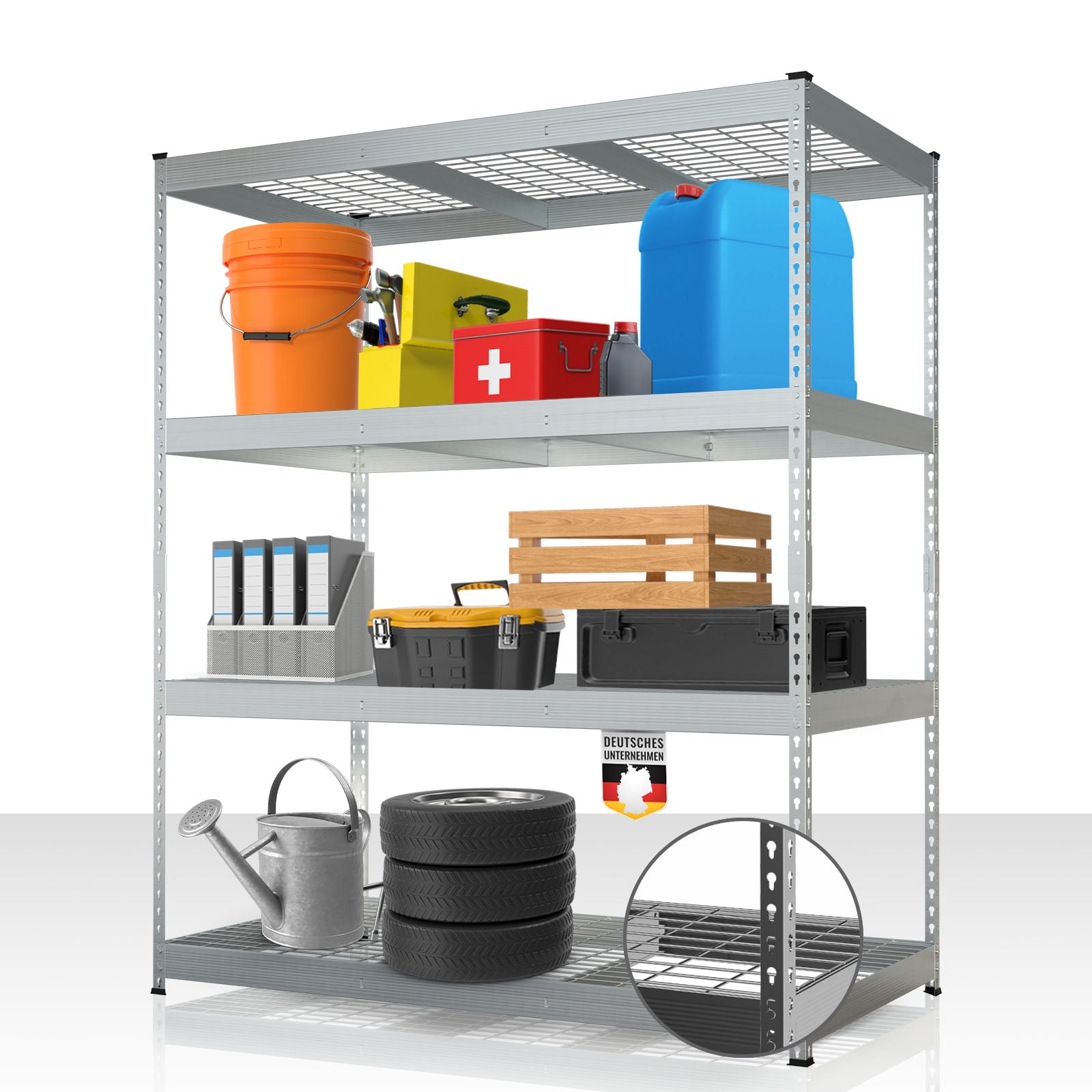 Avec le Yukon Rivet, vous optimisez efficacement les espaces de rangement inutilisés et créez rapidement de l’ordre. Que ce soit pour des outils lourds, des machines, des stocks ou des petits objets – cette étagère lourde est la solution idéale pour un stockage organisé et sécurisé.
